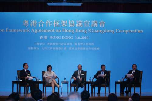 曾蔭權(quán)在致辭時說,粵港合作三十多年前已經(jīng)開展,未來三十年將在堅實的合作基礎(chǔ)上,進(jìn)行更清晰的發(fā)展定位和分工。他說,《框架協(xié)議》把《珠江三角洲地區(qū)改革發(fā)展規(guī)劃綱要》的宏觀政策,化為有利粵港發(fā)展的具體措施,為深化粵港合作提供了有用的平臺,有助雙方日后爭取更多“先行先試”的措施。