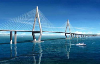 據(jù)方案估算,大橋用鋼量達(dá)123.35萬噸,較杭州灣跨海大橋多一半,相當(dāng)于建造11個(gè)“鳥巢”國(guó)家體育場(chǎng)。
