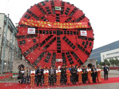 中鐵十五局集團副總工程師王約瑟介紹說,這臺用于廣深港高速鐵路深圳段隧道建設的盾構(gòu)機,直徑達13.17米、長160米、重達280噸,將是中國鐵路建設史上運用的最大型的盾構(gòu)機,將使在高樓林立、地質(zhì)條件復雜的環(huán)境下建設的廣深港高鐵可以安全、快速推進。