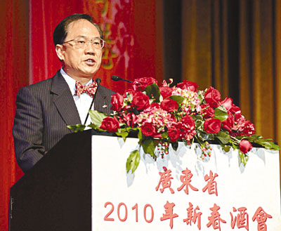 曾蔭權(quán)期望,在新的一年,粵港兩地要繼續(xù)凝聚社會共識,透過優(yōu)勢互補(bǔ),加快香港在經(jīng)濟(jì)上與珠三角的配合。雙方的共同目標(biāo)是結(jié)合廣東省“先行先試”和香港“一國兩制”的優(yōu)勢,配合國家“優(yōu)化第二產(chǎn)業(yè),加快第三產(chǎn)業(yè)發(fā)展”的政策,為國家和香港經(jīng)濟(jì)的長遠(yuǎn)發(fā)展作新貢獻(xiàn)。他也祝愿,廣東于今年11月舉辦的第16屆亞運會圓滿成功。