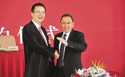 圖為王征與查懋聲出席當(dāng)日的簽約儀式。(圖片來源:香港文匯報)