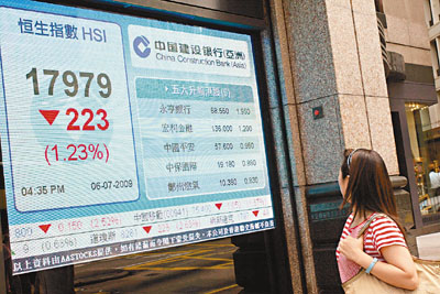 中新網(wǎng)7月7日電 據(jù)香港《文匯報(bào)》報(bào)道,港股6日走勢(shì)反復(fù),低開(kāi)近200點(diǎn)后,一度倒升55點(diǎn),但午后大市再下跌,全日呈“倒V形”走勢(shì),恒指收?qǐng)?bào)17979點(diǎn),跌223點(diǎn),全日成交只有545億元,即月期指低水45點(diǎn)。