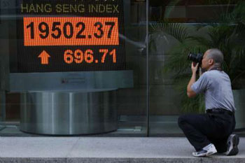 香港股市20日跟據(jù)外圍高開(kāi)200點(diǎn),輕易升破19000點(diǎn)關(guān)口拾級(jí)而上,中午收市升447點(diǎn),在深滬股市推波助瀾之下,港股午市升勢(shì)持續(xù)擴(kuò)大,最多升700點(diǎn),金融股及地產(chǎn)股齊齊為股市添動(dòng)力,指數(shù)以接近全日高位收市,報(bào)19502點(diǎn),上升696點(diǎn)或3.7%,多只藍(lán)籌股重返去年由雷曼爆煲引發(fā)的金融海嘯前水平,國(guó)企指數(shù)升幅超過(guò)4%或446點(diǎn),收市報(bào)11593點(diǎn)。
