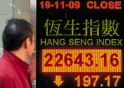 中新網(wǎng)11月20日電 據(jù)香港《文匯報(bào)》報(bào)道,受外圍股市偏軟影響,恒指19日高開(kāi)56點(diǎn)后即向下,午后跌幅進(jìn)一步擴(kuò)大,最低曾見(jiàn)22587.18點(diǎn),全日收?qǐng)?bào)22643.16點(diǎn),跌197.17點(diǎn),全日總成交697.69億元,國(guó)企指數(shù)跌217.03點(diǎn)至13470.98點(diǎn)。