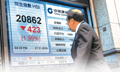 在內(nèi)地公布去年第四季經(jīng)濟數(shù)據(jù)后,大市氣氛逆轉(zhuǎn)。在匯控、中移動及富士康等藍籌領跌之下,地產(chǎn)股跌幅擴大,中資金融股也全線下滑,令一度收復21日早失地的港股,午后再急瀉,曾低見20828點,跌近460點。恒指全日收報20862.6點,跌幅達2%,為3個月以來的低位,成交額835.9億元,顯示沽壓強大。
