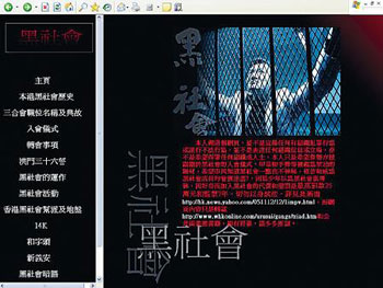 其中一名學(xué)生以黑社會(huì)為題制作網(wǎng)站,內(nèi)容涉及幫派歷史、入會(huì)儀式、誓詞、暗語(yǔ)等,該生在首頁(yè)聲稱(chēng)設(shè)立網(wǎng)站并非宣揚(yáng)不法行為,只希望透過(guò)披露被視為禁忌的敏感數(shù)據(jù),避免青少年因好奇而模仿或加入黑社會(huì)。