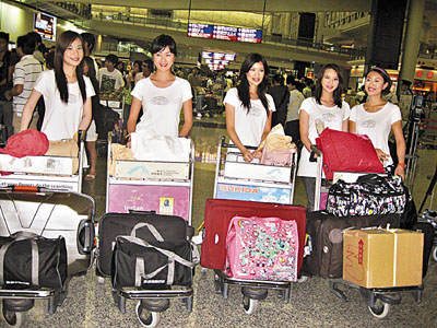 中新網(wǎng)7月3日電 據(jù)香港《文匯報(bào)》報(bào)道,應(yīng)屆香港小姐的北海道外景之旅順利完成,大隊(duì)返港,一眾佳麗及嘉賓胡杏兒和陳倩揚(yáng)把握上機(jī)前的小小時(shí)間買禮物,10號李姿敏的媽咪原來參加了港姐北海道旅行團(tuán),與愛女一起回港。