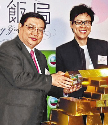 中新網(wǎng)8月14日電 據(jù)香港《文匯報(bào)》報(bào)道,香港無線總經(jīng)理陳志云13日邀請(qǐng)財(cái)經(jīng)界名人曹仁超接受《志云飯局》訪問,更送上多條大金磚給曹仁超。陳志云大爆曹仁超愛收藏金磚,最高峰時(shí)期家中有三個(gè)保險(xiǎn)箱擺放金磚,收藏黃金1000兩,即相等于眼前的金磚約40條。