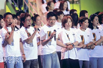 為了支持臺灣救災(zāi)工作,由香港演藝界發(fā)起,24個機(jī)構(gòu)及媒體合辦歷時4小時的《8•8水災(zāi)關(guān)愛行動》,以歌聲向全球華人呼吁踴躍捐款,到深夜11時半,未計現(xiàn)場捐款箱和網(wǎng)上捐款,已籌得善款5090萬元。