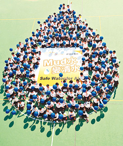 其中祖堯天主教小學(xué)19日率先揭開(kāi)“改變世界我可以!”大行動(dòng)的序幕,約200名學(xué)生手持藍(lán)色氣球,于學(xué)校操場(chǎng)以身體砌成“Mud水變清水”的水滴點(diǎn),并高呼“改變世界我可以!”的口號(hào),以表達(dá)對(duì)貧困國(guó)家兒童飲用清水的關(guān)注及身體力行改變世界的決心。