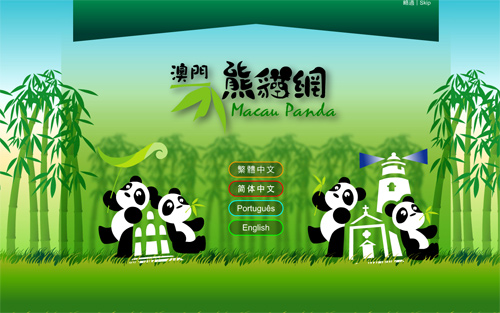 考慮到大熊貓的生活環(huán)境和習(xí)性,“澳門熊貓網(wǎng)”以綠色及竹葉為主,并以一對大熊貓背靠著澳門著名世遺景點(diǎn)--大三巴牌坊為圖案,吸引用戶的視線,展示澳門、大熊貓及網(wǎng)站的關(guān)聯(lián)性,亦希望加強(qiáng)市民對大熊貓的關(guān)懷及重視。
