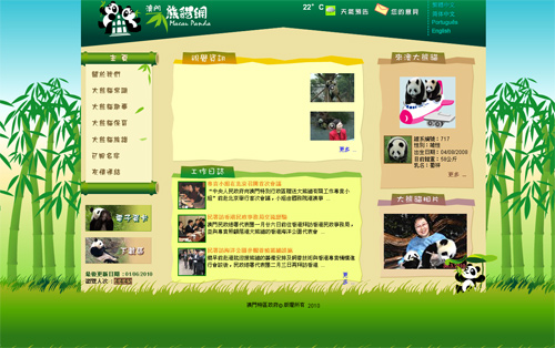 網(wǎng)站面向世界各地的使用者,具備繁體中文、簡體中文、葡語及英語的接口,并會(huì)定期更新內(nèi)容,讓大眾能緊貼來澳大熊貓的消息及相關(guān)資訊。