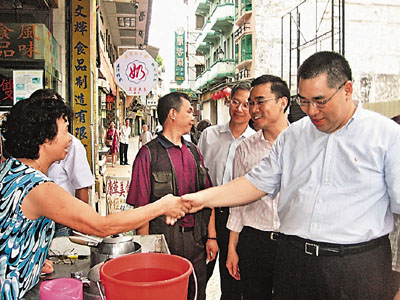 中新網(wǎng)7月15日電 據(jù)香港《文匯報(bào)》報(bào)道,為了親身了解民情,澳門行政長官候選人崔世安14日巡視多區(qū)的街市和商鋪,了解經(jīng)營情況,直接聆聽商戶的聲音,并與市民“零距離”接觸。