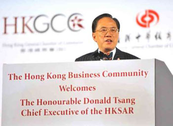 曾蔭權(quán)2日出席商界聯(lián)席午餐會(huì),闡述施政報(bào)告內(nèi)容,讓商界更了解特區(qū)政府未來(lái)一年的施政方針。曾蔭權(quán)表示,香港是一個(gè)不斷追求進(jìn)步的城市,今年的施政報(bào)告是為了進(jìn)一步推動(dòng)香港在經(jīng)濟(jì)、社會(huì)和政治方面的進(jìn)步,每一個(gè)人都必須參與其中,發(fā)揮自己的一分力量。