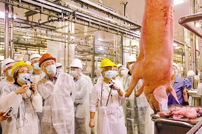 上水屠房5日已加強(qiáng)戒備,保安人員及部分屠房工人均戴上口罩。豬農(nóng)尹偉明表示,已收到有關(guān)單位通知,將加強(qiáng)消毒至每周2次。有工人表示,不擔(dān)心受到感染,會(huì)視乎情況決定是否接種甲型流感疫苗。
