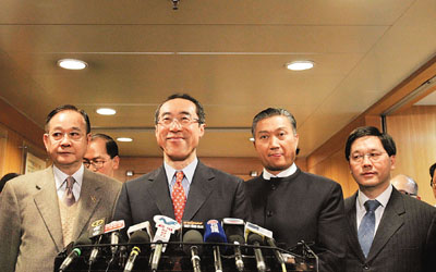 唐英年、政制及內地事務局局長林瑞麟、民政事務局局長曾德成等,19日出席18區(qū)區(qū)議會正副主席例會,聽取他們對剛發(fā)表的咨詢文件意見,歷時約為1小時。據了解,除了2名區(qū)議會主席因事未能出席,其它區(qū)議會正副主席都有出席會議。
