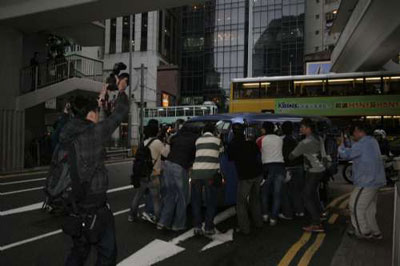 車(chē)輛在軍器廠街駛進(jìn)警察總部的路程,原本只需短短一分鐘,因在場(chǎng)守候的記者剛見(jiàn)客貨車(chē)駛進(jìn),即蜂擁而上包圍客貨車(chē)拍照,結(jié)果車(chē)輛花了多達(dá)15分鐘,才能進(jìn)入大廈內(nèi),場(chǎng)面一度混亂,期間警方出動(dòng)十多名警員在馬路上維持秩序。陳的私人保鏢3日曾尾隨警方車(chē)輛駛離寓所,但4日總部現(xiàn)場(chǎng)所見(jiàn),他們似已再無(wú)隨行。