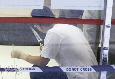 狂漢連襲3人后走出盛國(guó)樓,繼續(xù)手握染血軍刀走到20多米外的盛安樓,直闖地下嘉怡物業(yè)管理有限公司辦事處,向兩名管業(yè)主任施襲,當(dāng)中郭×基身中多刀浴血,梁×宗被砍傷手。據(jù)悉,當(dāng)時(shí)辦事處內(nèi)多名職員目睹斬人經(jīng)過,嚇得魂飛魄散,更有女職員痛哭。血洗辦事處后,疑兇似全無(wú)逃走之意,手執(zhí)血刀走出門外抽煙及念念有詞。