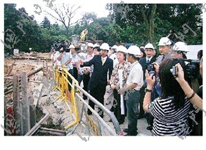 陳麗敏、譚偉文等昨日視察石排灣郊野公園熊貓館建館情況。譚偉文表示,建館工程進(jìn)度理想,正全力趕工完成基礎(chǔ)土建部分,接著會(huì)展開上蓋部分。由于已進(jìn)入雨季和臺(tái)風(fēng)季節(jié),有關(guān)承建單位已作好防風(fēng)雨的準(zhǔn)備工作,盡量減低天氣對(duì)工程的影響。以目前情況來看,相信可爭取九月前完成整項(xiàng)工程。
