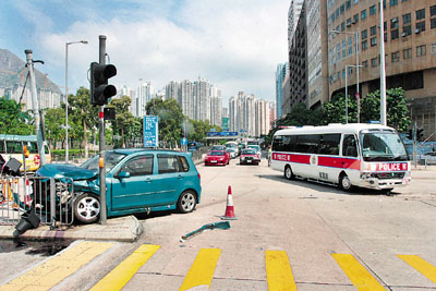 此時(shí)剛有一輛屬于警察機(jī)動(dòng)部隊(duì)的24座位未載客中型巴士擬駛往輔警總部,巴士沿啟祥道西行駛至交界處,車長(zhǎng)不防有私家車右轉(zhuǎn)而至,兩車俱收剎不及在交界處互撼。