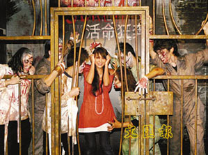 據(jù)了解,整間瘋?cè)嗽汗灿?個(gè)區(qū)域,除了逼真恐怖的蠟像,會走動的“瘋?cè)恕备S時(shí)失驚無神“彈”出來,加上處處機(jī)關(guān)、暗角位,參觀者在長約5分鐘的旅程,可謂步步驚心!