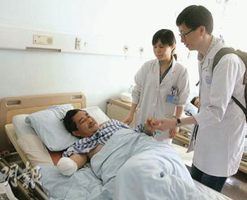 臥在病床上的賈大夫,破爛的腸臟已縫補好,情況穩(wěn)定過來,但因雙臂和盆骨都折斷,動也不能動,深切體會能醫(yī)不自醫(yī)的無奈。他坦言,若不是身受創(chuàng)傷,他應(yīng)是在災(zāi)場上救援的一員,但目前只能等待由香港到來的醫(yī)生為他動手術(shù)。“真的很感謝香港醫(yī)生愿意前來幫忙……很有心……”
