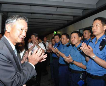 中新網(wǎng)5月23日電 據(jù)香港大公報報道,參與四川大地震搜救工作的香港搜救隊成員,22日晚自成都返港,獲得英雄式的歡迎。香港保安局局長李少光在歡迎式上致詞,盛贊各人表現(xiàn)英勇和專業(yè),不畏艱辛的無私奉獻(xiàn),令港人感到驕傲。儀式完成后,隊員上前輕吻妻兒,更有人不禁流下男兒淚。