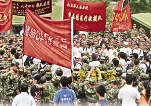 經(jīng)過(guò)約一小時(shí)的車程去到都江堰市的山峨鄉(xiāng)的一間小學(xué)遺址,在那里有數(shù)百武警軍人在救災(zāi),藝人除了高聲為他們打氣外,逐一與他們握手。之后轉(zhuǎn)往軍人正在救災(zāi)的濟(jì)南軍區(qū)的軍營(yíng)慰問(wèn),途中又去慰問(wèn)災(zāi)區(qū)民眾,有民眾見(jiàn)到華仔就哭。藝人在途中加油站借廁所時(shí),路邊的民眾見(jiàn)到他們紛紛要求握手簽名。