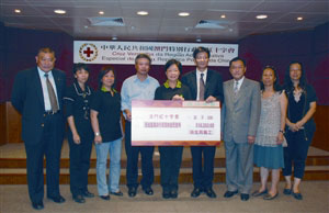 圖:澳門(mén)衛(wèi)生局職工代表送交善款。(圖片來(lái)源:澳門(mén)日?qǐng)?bào))