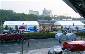 位于收容災區(qū)民眾最多的九洲體育館內的帳篷學校于上月19日開學,供2000多名來自北川、安縣等重災區(qū)的孩子上課,他們成為地震后災區(qū)首批復課的中小學生。