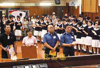 六月五日,香港學(xué)友會、香港群青會在香島中學(xué)舉辦“川港連心—四川地震悼念會”。多名曾經(jīng)到災(zāi)區(qū)報道的記者和搜救隊成員及專家,應(yīng)邀到場與學(xué)生們一起悼念遇難的同胞,并分享生命教育的意義。 中新社發(fā) 洪少葵 攝