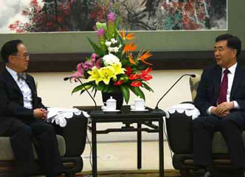 在粵港合作第十一次聯(lián)席會(huì)議舉行前夕,汪洋在廣州珠島賓館會(huì)見了參加粵港聯(lián)席會(huì)議的特首曾蔭權(quán)及政務(wù)司司長(zhǎng)唐英年、政制事務(wù)局局長(zhǎng)林瑞麟等香港特區(qū)政府官員一行。