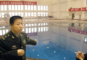 楊利偉介紹失重訓(xùn)練水槽。(圖片來源:澳門日?qǐng)?bào))