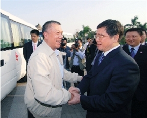 深圳副市長卓欽銳歡迎何厚鏵一行。(圖片來源:澳門日報)