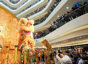 時(shí)代廣場(chǎng)2日舉行“富貴吉祥金牛陣”中樂(lè)表演賀新歲,場(chǎng)面熱鬧。在響亮的鑼鼓聲中,金龍旋轉(zhuǎn)舞動(dòng),三頭醒獅表演采青,吸引眾多途人駐足觀看,更有不少外籍游客錄像及拍照留念。
