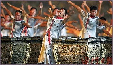 曾在由張藝謀執(zhí)導(dǎo)的北京奧運(yùn)會(huì)開幕式上大放異彩的“擊缶而歌”中的道具“奧運(yùn)缶”以湖北曾侯乙墓出土的青銅冰鑒缶為基礎(chǔ),集古代元素和現(xiàn)代科技為一身,是一個(gè)重要的歷史符號。