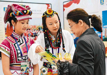 中新網(wǎng)4月12日電 據(jù)香港《文匯報》報道,11日,包括北京、上海、廣州、長春、鄭州、西安等在內(nèi)的全國186個重點旅游城市同步啟動“全國百城旅游宣傳周”活動。近百名港澳游客接受北京旅游局、商務(wù)局贈送的《消費伴旅》,憑此手冊港澳游客可在王府井、西單、前門享受折上折購物優(yōu)惠。