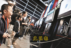 中新網(wǎng)12月25日電 對(duì)沉迷電玩的“機(jī)迷”而言,在圣誕節(jié)買(mǎi)一部游戲機(jī)也許不是難事,但對(duì)7歲半的香港兒童郭曉明而言,卻是遙不可及的夢(mèng);忌霞∪獍l(fā)展緩慢癥的曉明至今還沒(méi)有接觸過(guò)游戲機(jī),24日憑免費(fèi)入場(chǎng)券到亞洲游戲展,首次玩游戲機(jī)的她很高興:“籃球游戲不好玩,我喜歡打倒壞人,射擊游戲好好玩!