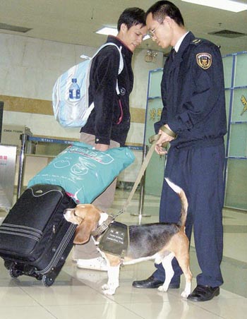 目前,廣東共有17只檢疫犬,分別駐守各關(guān)卡口岸,包括中山、順德、東莞、天河和番禺各2只;機場有6只;余下1只則在廣州站郵件辦事處執(zhí)勤,全屬比格犬。順德出入境檢驗檢疫局長何偉棠說,他們選用比格犬,而不像北京選用拉布拉多犬,是考慮到上述口岸老少人流多,由體積較少較親民的比格犬執(zhí)勤較合適。