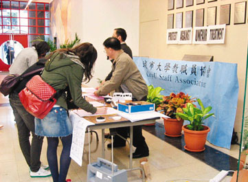 香港城大教職員協(xié)會15日中午午膳時間在校內(nèi)發(fā)起簽名行動,爭取同工同酬、延長合約制員工年期等目標(biāo)。協(xié)會主席謝永齡表示,因削減工資關(guān)系,該校2002年后入職的員工,起薪及頂薪點都較之前入職的低20%至30%,因此要求校方重新調(diào)節(jié)其薪級,以達(dá)致同工同酬。他又指出,近年城大不少員工的合約只能“逐年簽”,嚴(yán)重影響士氣,希望大學(xué)能提供最少2年的合約年期,并讓員工在工作6年后轉(zhuǎn)為實任長工制。