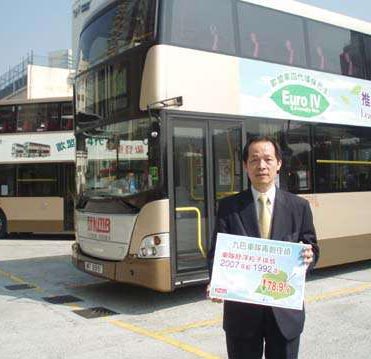香港九巴擁有全亞洲前3部配備歐盟第四代環(huán)保引擎的雙層巴士。沈乙紅介紹時表示,九巴2006年開始購入歐四巴士,并與歐洲同步投入營運,新巴士在環(huán)保成效及性能與表現(xiàn)各方面均有令人滿意的表現(xiàn),為此,九巴今年為車隊添置多40部同類型巴士。他說,新巴士車頭采黃白顏色搭配,它們正來往元朗鐵路站與落馬洲支線的B1線、來往天瑞邨與佐敦的69X線,以及來往市區(qū)的104線,投入服務(wù)已超過一年半。