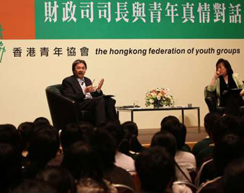 曾俊華在見面會開始之初就明確表示,歡迎學生發(fā)問任何問題,鼓勵他們切勿過分緊張。“你們有任何想法,或者你們知道親戚朋友有什么看法,都盡管提出來。如果你們覺得預算案是稍為沉悶的話,你們可以提出其它比較有趣的話題!
