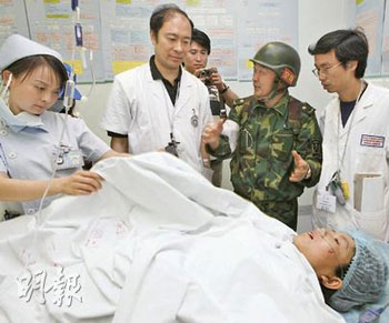 中新網(wǎng)5月22日電 據(jù)香港明報報道,“我吃野草、吃蚯蚓,我告訴自己要活下去,拼命的活下去!口喝了,沒有水,我便喝自己的尿,喝了兩三遍……不知過了多少天,劉大爺來到,他說:‘我是來救你的!’”21日再有一名在廢墟中重傷待援9日9夜的女工獲救,而負(fù)責(zé)救援的,正好是香港醫(yī)管局急癥專科醫(yī)生劉楚釗和護士劉炳發(fā)。