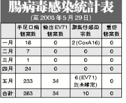 圖:腸病毒感染統(tǒng)計表。(圖片來源:澳門日報)
