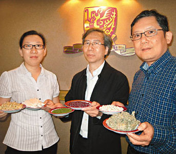 (左起)趙利、謝俊仁及車鎮(zhèn)濤展示夏季食療。(圖片來(lái)源:文匯報(bào))