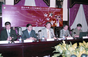 主辦單位2日下午4時(shí)在民署大樓禮堂舉行記者招待會(huì),民署管委會(huì)委員馬錦強(qiáng),中聯(lián)辦文教部副部長(zhǎng)級(jí)助理張曉光,民署康體部代部長(zhǎng)吳衛(wèi)鳴、文娛康體處長(zhǎng)陳孝永及首席高級(jí)技術(shù)員許國(guó)權(quán)介紹了晚會(huì)詳情。