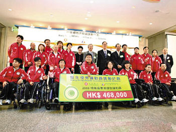 香港殘奧代表團(tuán)22日出席典禮領(lǐng)取獎(jiǎng)金。(圖片來(lái)源:文匯報(bào))