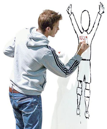 貝克漢姆在某廣告中即席揮毫,畫(huà)了《圓的世界》。(圖片來(lái)源:明報(bào))