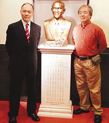 霍老次子、中總會長霍震寰偕候任會長蔡冠深、榮譽(yù)會長曾憲梓等,主持29日銅像揭幕儀式。與霍老相識多載的曾憲梓,還在霍老銅像面前作三鞠躬,表達(dá)對他的懷念。
