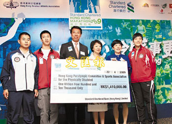 蘇樺偉及余翠怡22日聯(lián)同香港傷殘人士體育協(xié)會主席馮馬潔嫻出席“渣打馬拉松2009”的工商杯及中小企馬拉松杯的頒獎禮,接受該賽事為殘奧委會籌得141萬元的善款。蘇樺偉其后在頒獎禮上表示自己已重新投入訓(xùn)練及工作,并已與教練商討未來目標(biāo):“去年11月我已開始投入練習(xí),短期都是以亞運(yùn)會為目前主要訓(xùn)練目標(biāo)!